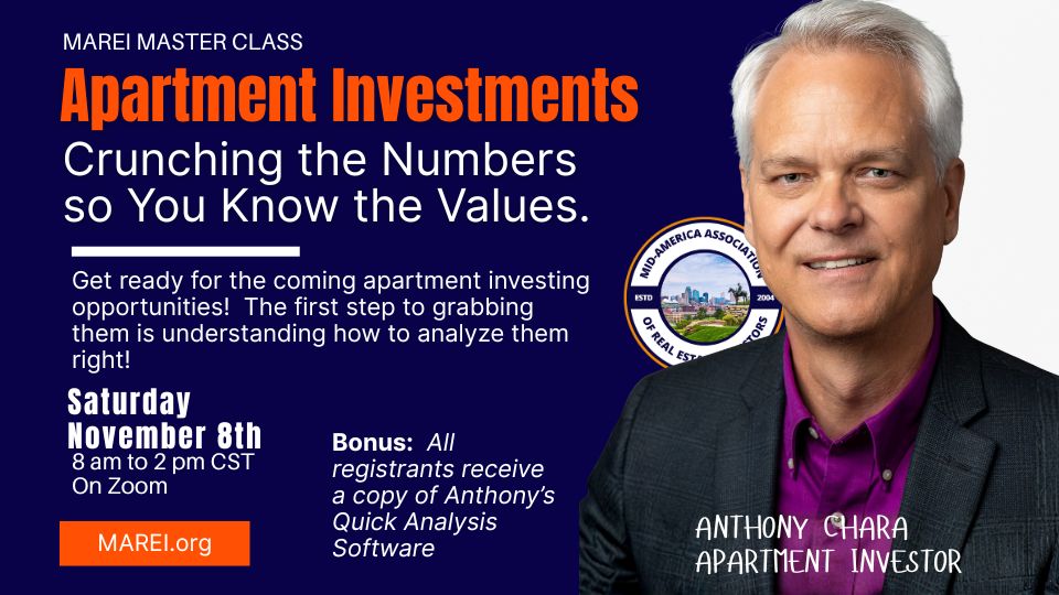 So we’re devoting a day to that crucial first step of analyzing apartment deals, with Anthony Chara, a nationally renowned apartment investor (he and his partners have purchased over 2,100 doors across the U.S.) and educator (we love his to-the-point, easy-to-understand approach).